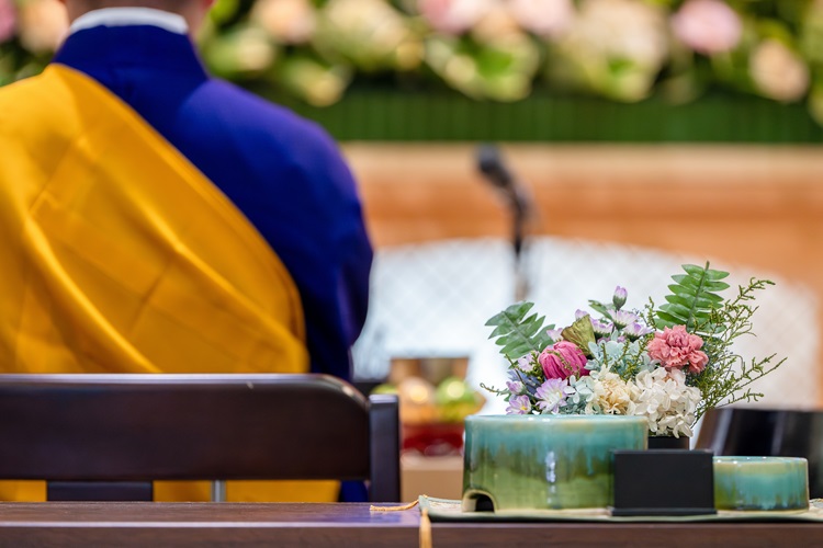 焼香のあとは、僧侶の法話です。私語を慎み、しっかりと耳を傾けましょう。