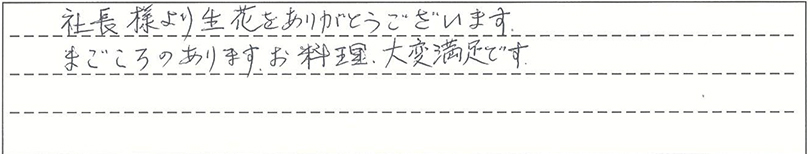 社長様より生花をありがとうございます。まごころのあるお料理、大変満足です。