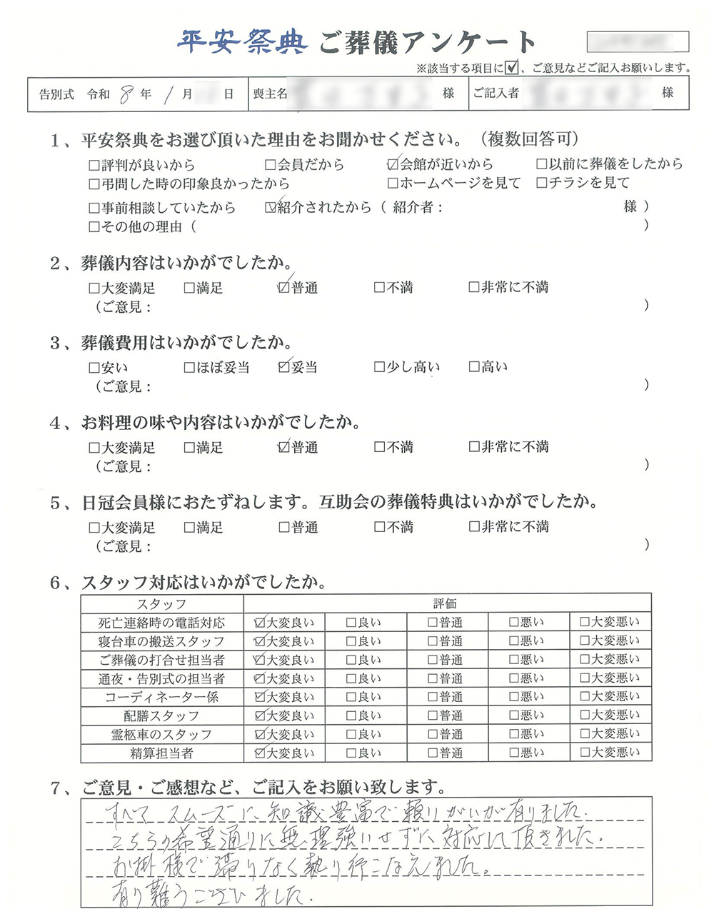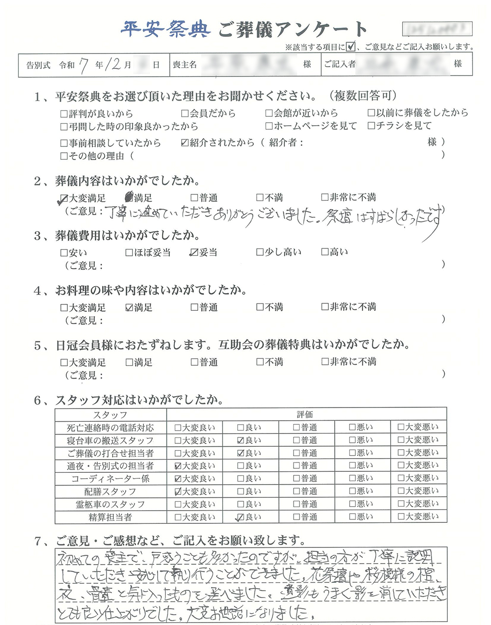 ご葬儀アンケート「お客様の声」をご紹介します