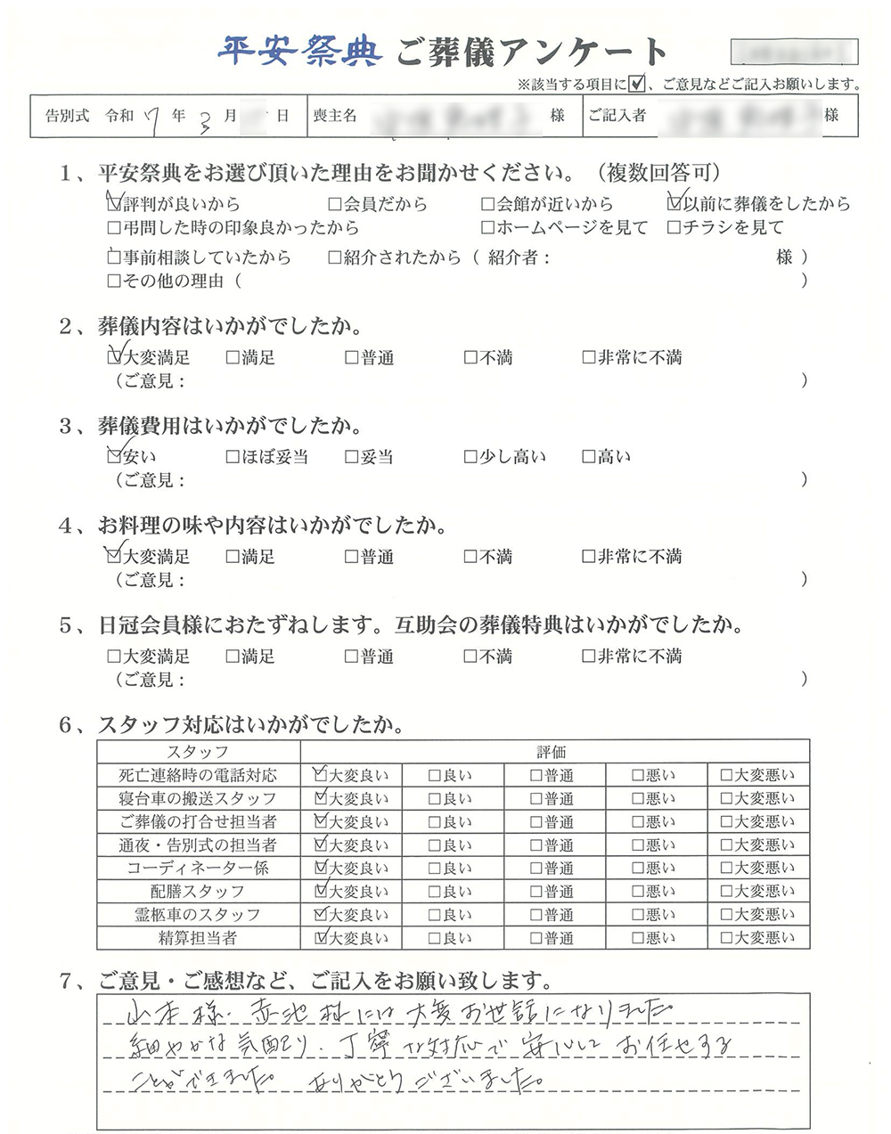 大変安心して葬儀を進めることができました。ありがとうございました。