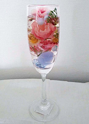 お好きな花やパール、ビー玉などをジェルで閉じ込め、涼しげで透明感のあるシャンパングラスのジェルフラワーを作ります。