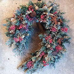 クリスマスに向けて、幸せ降りそそぐホースシュー(馬蹄形)リースを作ります。道具はすべて貸し出すので手ぶらでOK。(赤い実は変更になる場合があります。)