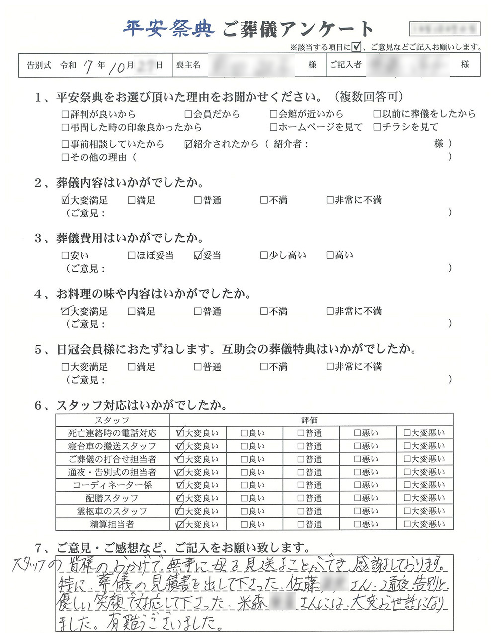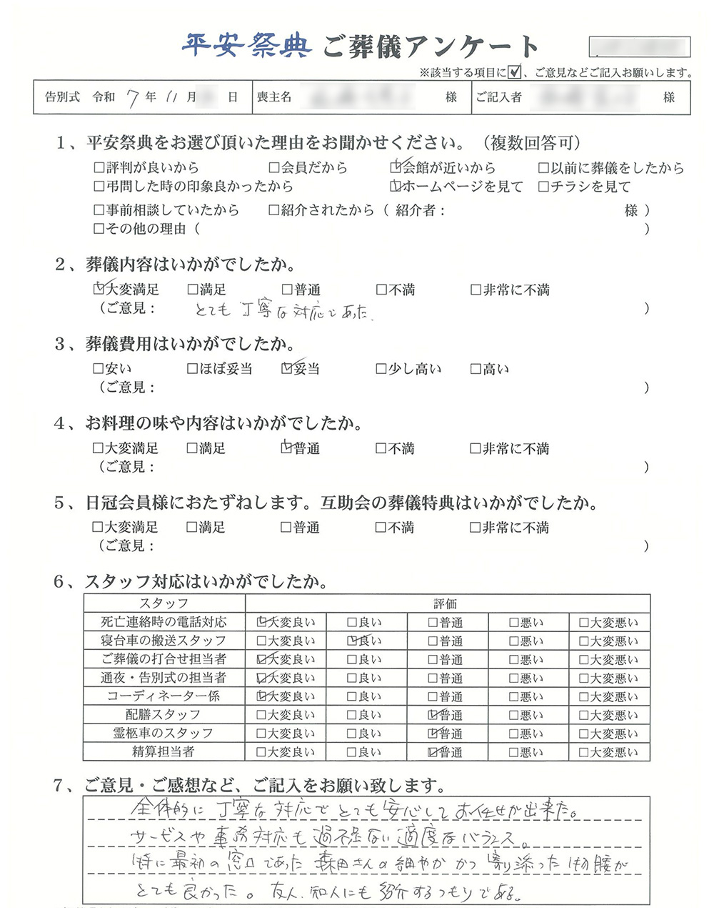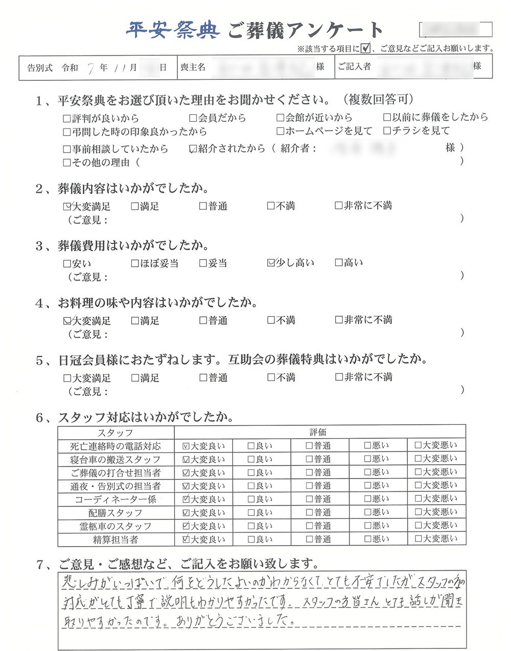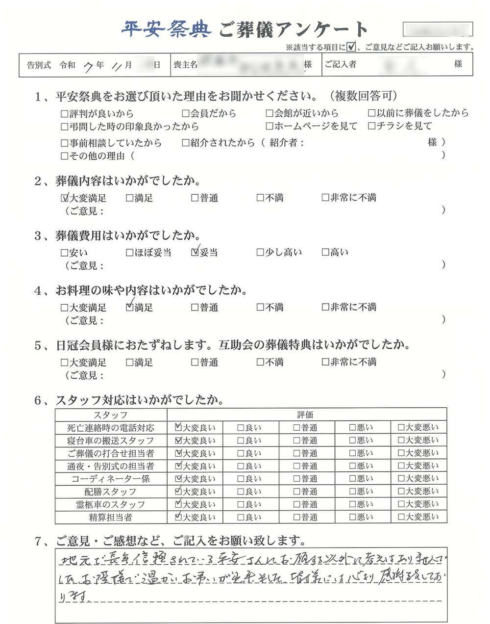 ご葬儀アンケート「お客様の声」をご紹介します