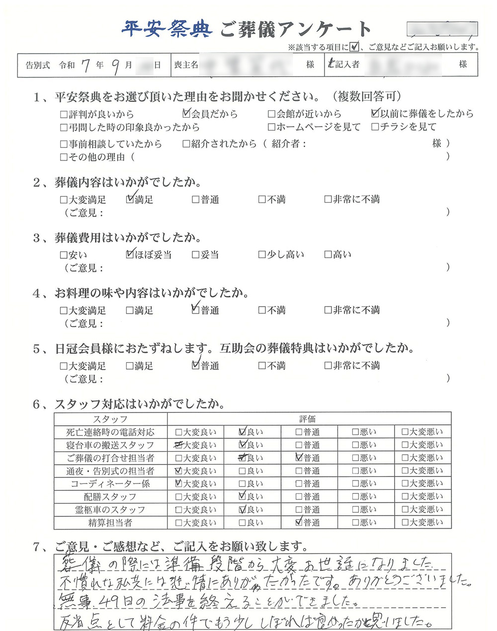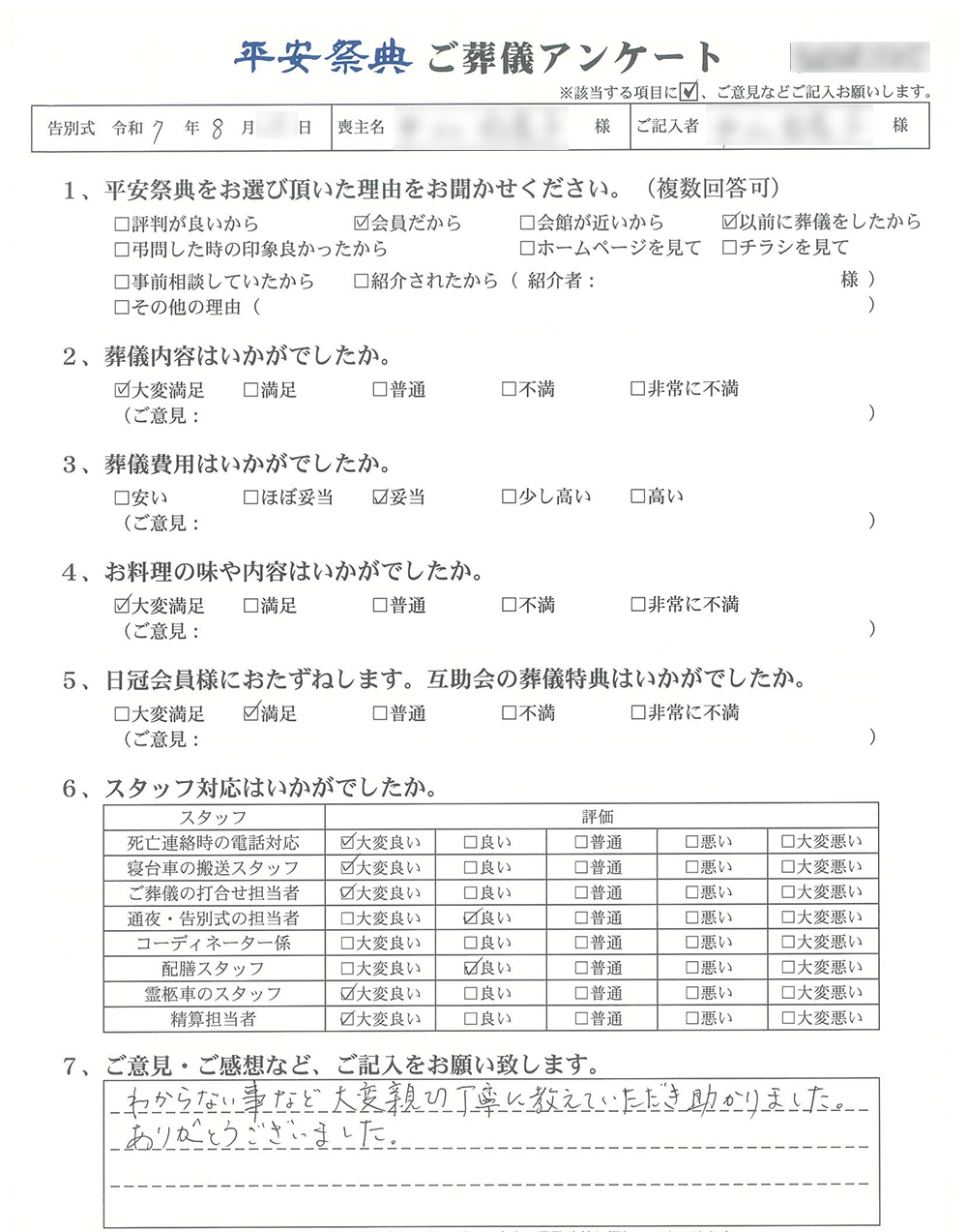 ご葬儀アンケート「お客様の声」をご紹介します