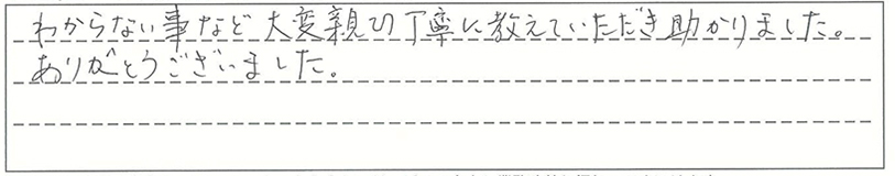 わからない事など大変親切、丁寧に教えていただき助かりました。ありがとうございました。